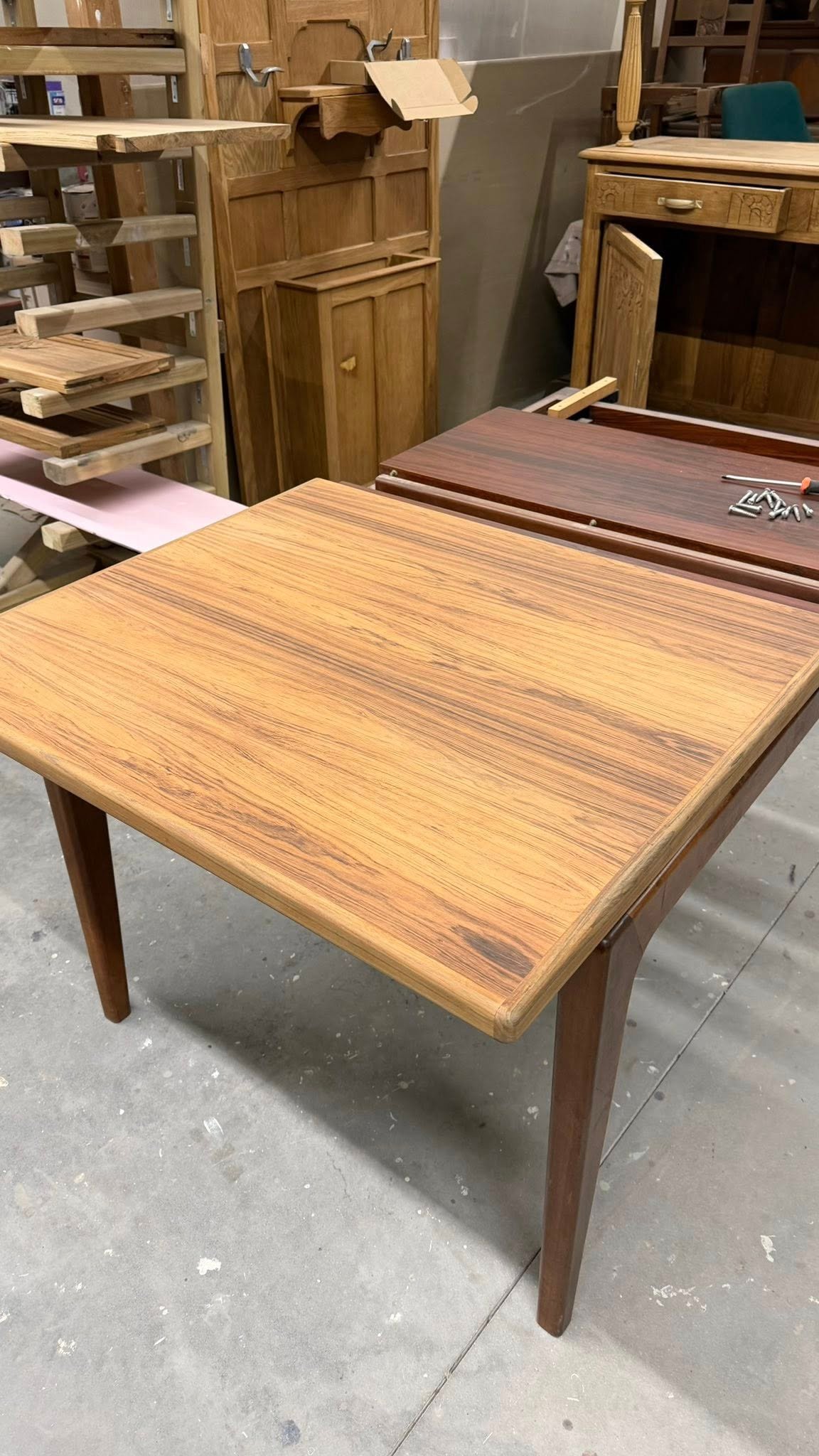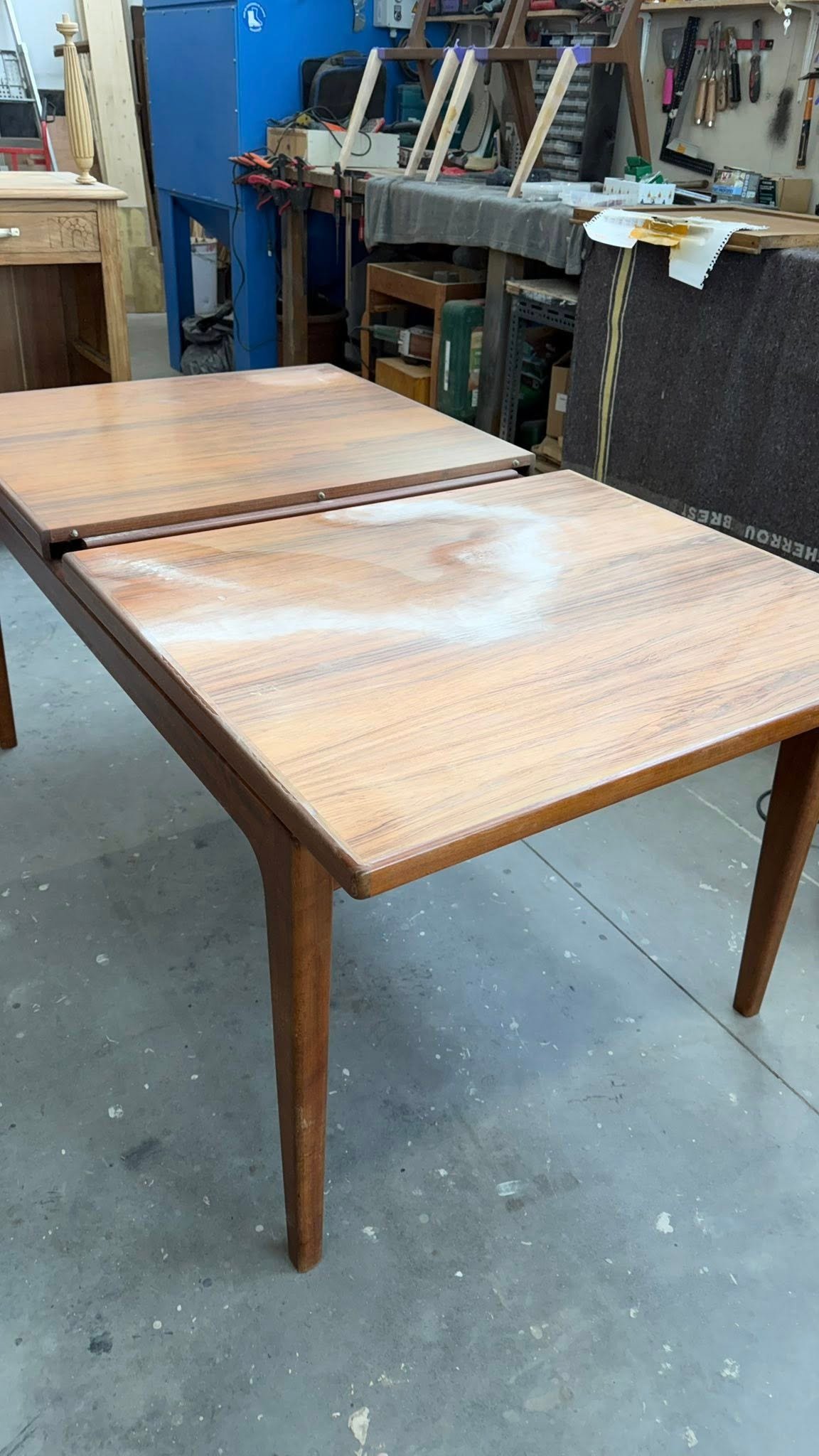 Rénovation d’une table scandinave en palissandre – années 1960